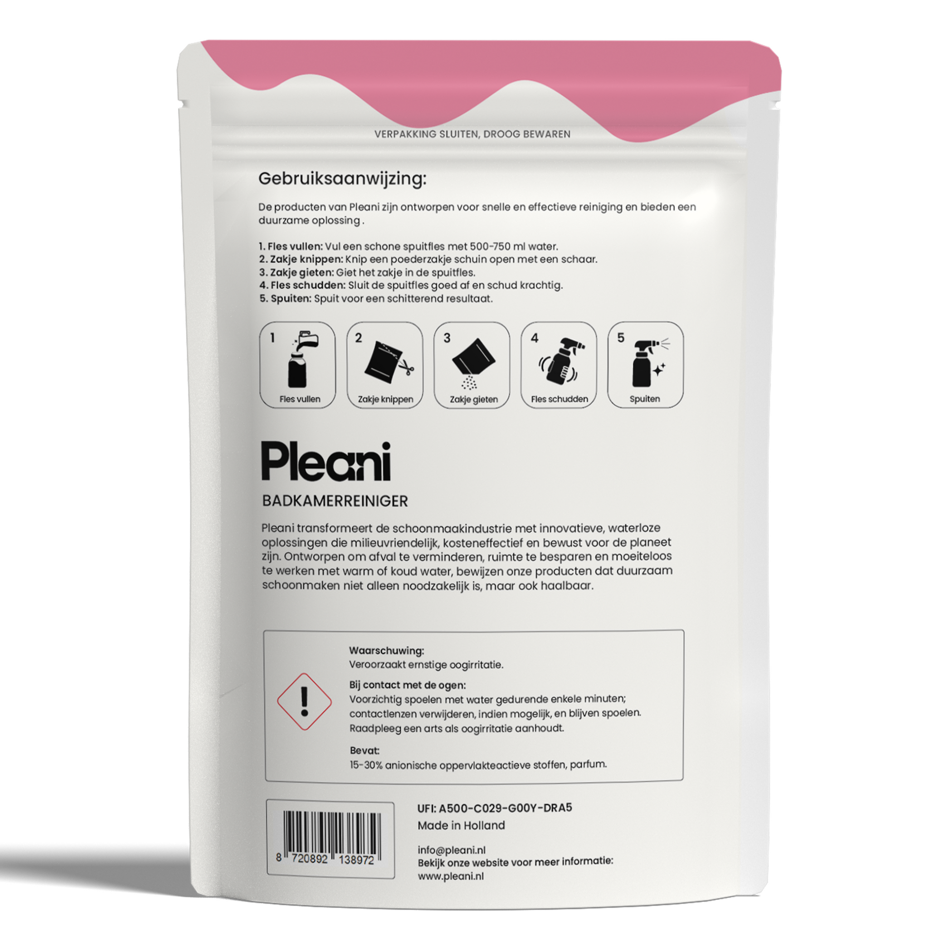 Pleani maakt het schoonmaken toekomstbestendig. Wat als schoonmaakmiddelen geen afvalprobleem zouden zijn, maar juist een deel van de oplossing? Met onze poedervormige navullingen bespaar je ruimte, afval en geld. Je hergebruikt de fles, voegt poeder en water toe - zonder overbodige toevoegingen, met focus op gemak en impact, gemaakt in Nederland.