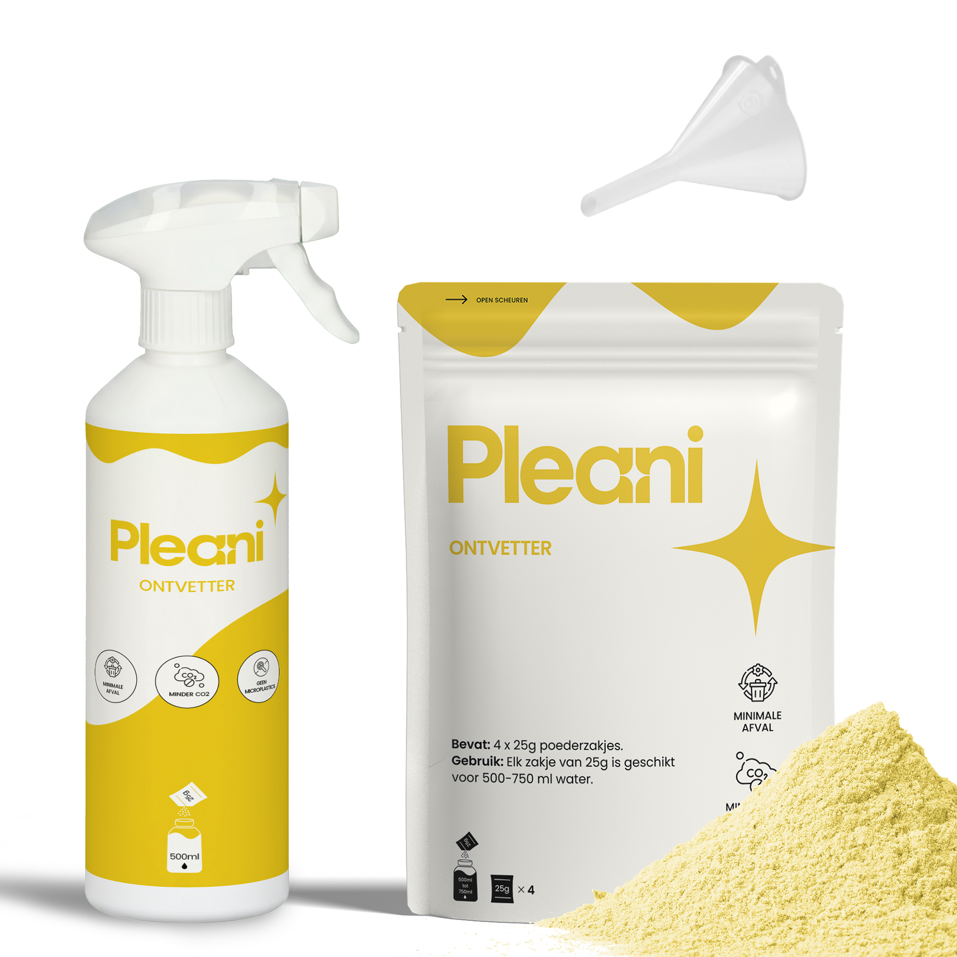 Pleani maakt het schoonmaken toekomstbestendig. Wat als schoonmaakmiddelen geen afvalprobleem zouden zijn, maar juist een deel van de oplossing? Met onze poedervormige navullingen bespaar je ruimte, afval en geld. Je hergebruikt de fles, voegt poeder en water toe - zonder overbodige toevoegingen, met focus op gemak en impact, gemaakt in Nederland.