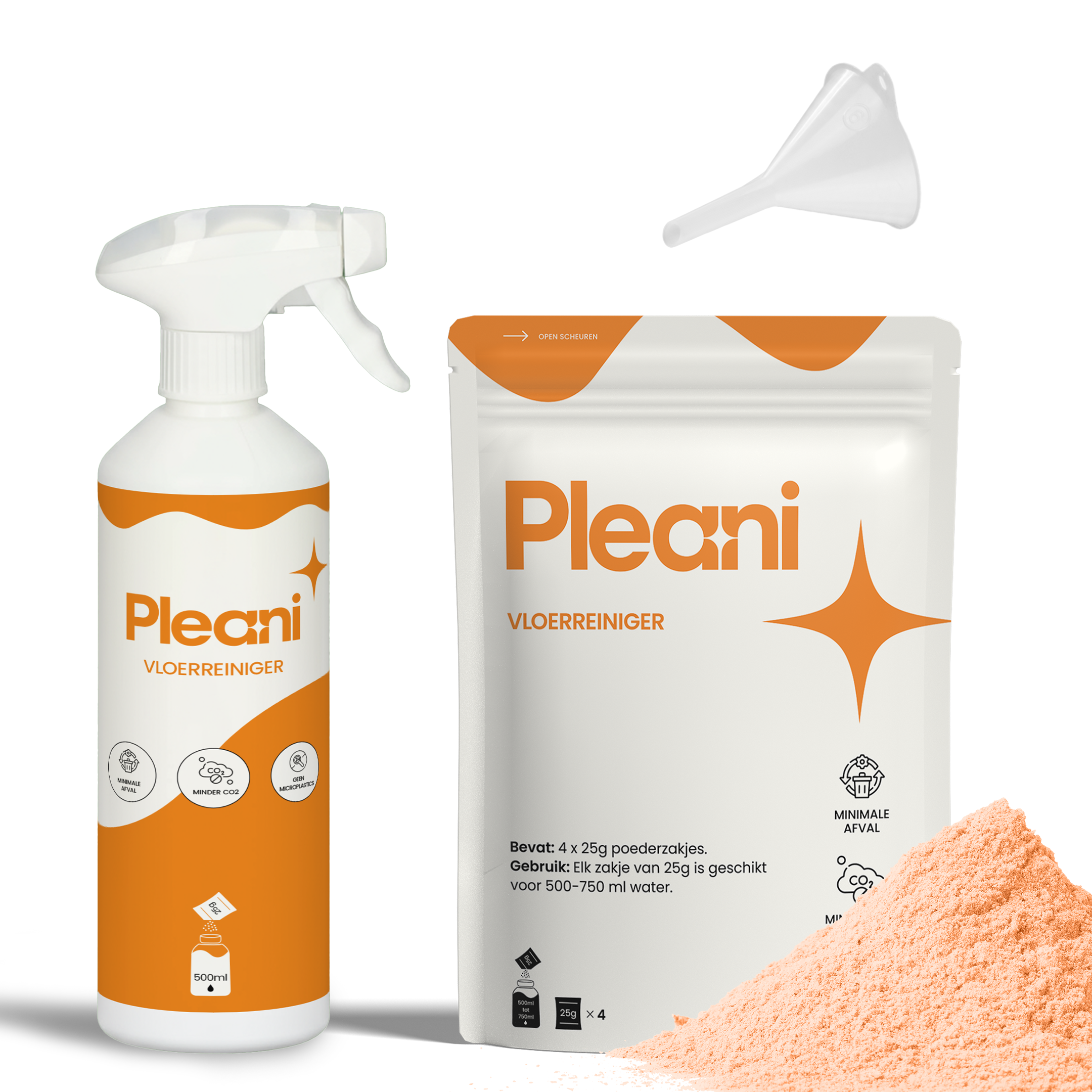 Pleani maakt het schoonmaken toekomstbestendig. Wat als schoonmaakmiddelen geen afvalprobleem zouden zijn, maar juist een deel van de oplossing? Met onze poedervormige navullingen bespaar je ruimte, afval en geld. Je hergebruikt de fles, voegt poeder en water toe - zonder overbodige toevoegingen, met focus op gemak en impact, gemaakt in Nederland.